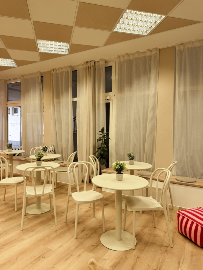 Bitte zieht eure Straßenschuhe vor dem Betreten unseres Cafés aus. Wir sind ein schuhfreies Café. Danke für euer Verständnis.